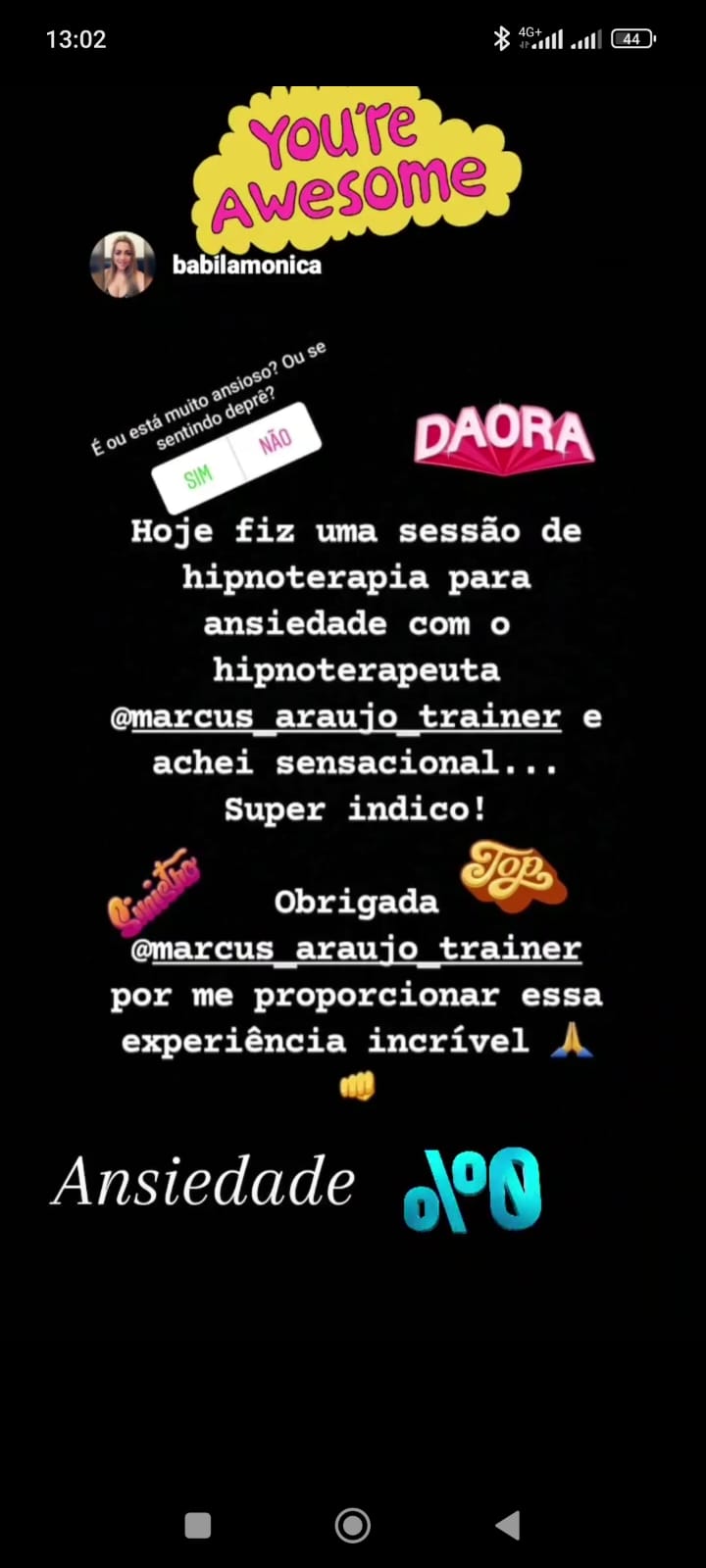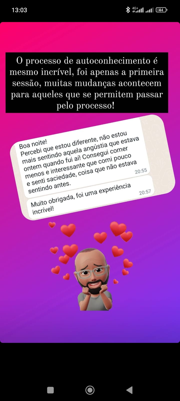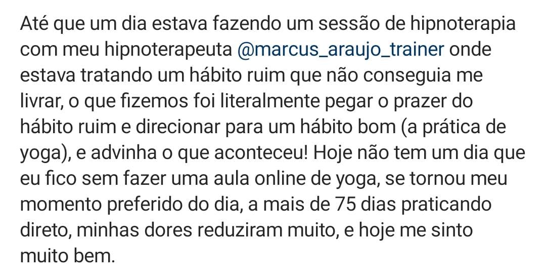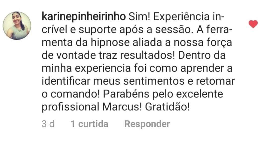 E isso é uma das coisas que mais me dá prazer na vida, conduzir pessoas a momentos de conexão entre corpo, mente, e espírito... é levar o indivíduo a um relaxamento profundo através da comunicação, mostrar como podemos através da nossa mente controlar até mesmo as sensações físicas do nosso corpo!